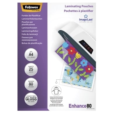 Lamineringsfickor A4 25 x 80 Mikron Blank Fellowes
