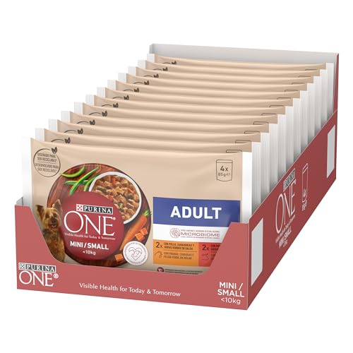 Purina ONE Mini 10 kg våtfoder för liten hund vuxen med kyckling och lamm, 12-pack med 4 kuvert på 85 g – 48 kuvert