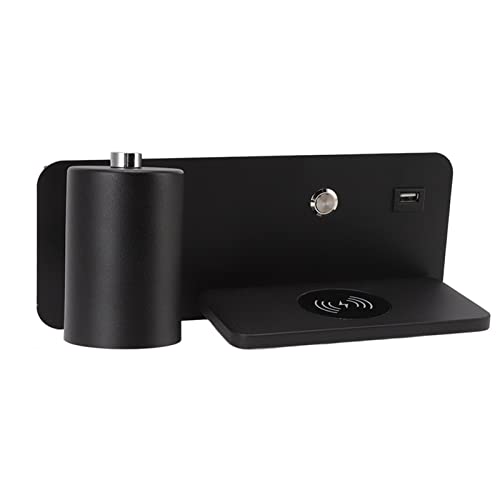 LED Vägglampor, Väggmonterad Läslampa Vid Sängkanten med 5V Trådlös Laddare och USB-laddningsportbrytare Knappkontroll Justerbar Vridbar Sovrumsvägglampa för Vardagsrummet(Svart vänster)