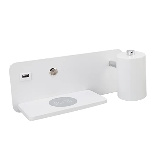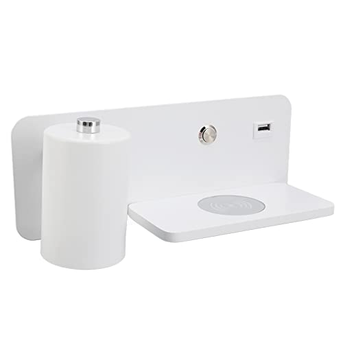 LED Vägglampor, Väggmonterad Läslampa Vid Sängkanten med 5V Trådlös Laddare och USB-laddningsportbrytare Knappkontroll Justerbar Vridbar Sovrumsvägglampa för Vardagsrummet(Vit höger)