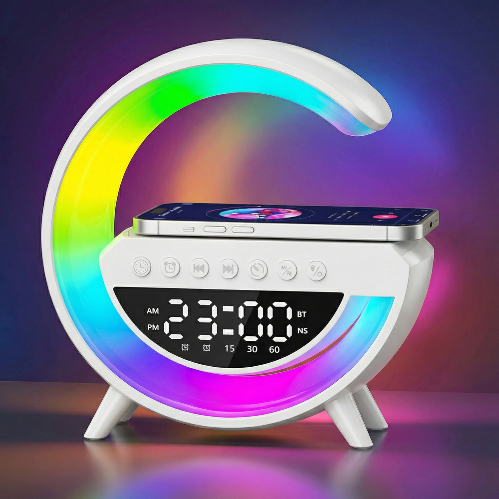 G-formad RGBIC-lampa - Trådlös laddare, 24x23cm, Vit, Bluetooth, 5V USB