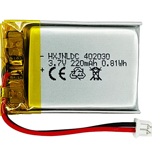 3,7 V DC uppladdningsbart polymer litiumbatteri (402030 4 × 20 × 30,5 mm 220 mAh) för 3,7-5v batteriprodukter, klocka, hörlurar, byte av LED-lampa batteri