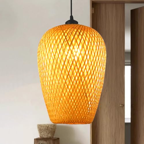 GUANSHAN Handvävd bambu taklampa naturlig bambutråd pastoral stil hängande lampa taklampa ljuskrona för bar, kaffe, loft, restaurang, vardagsrum, sovrum