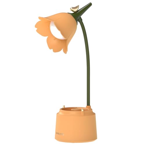 Söt LED-bordslampa Kawaii Skrivbordstillbehör, Flower Bird Bordslampa USB Uppladdningsbar, 3 färglägen, Steglös avbländning, Touch-Sensitive Switch Kawaii Room Decor Lamp, Eye Caring Reading Lamp
