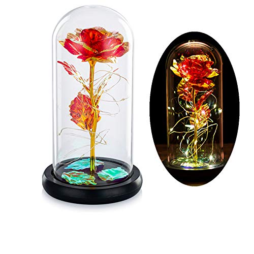 MOYKSRR Evig ros i glas, Skönheten och Odjuret Ros, Eviga Rosor i Glas, LED-lampor Konstgjorda Blommor Ros, Romantisk Present till Kvinnor, Bröllop, alla Hjärtans dag, mors dag, jubileum, juldag