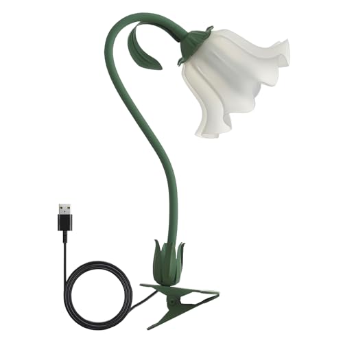 Lampa lampskärm akryl blomma bord sänglampa grön metall usb lampa fri roterande lampa klämma för säng 3 belysningslägen för sovrum vardagsrum arbetsrum kontor