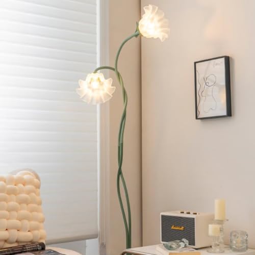 GUANSHAN Romantisk liljekonvalj golvlampa, fransk pastoral blomma sänglampa, golvbelysning, dekorativ golvlampa, böjbar, gör-det-själv för sovrum, vardagsrum