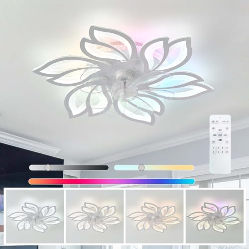 Luyaim Takfläkt Med RGB-blommor, Lampor Och Fjärrkontroll Vändbar Ljuddämpning DC-motor Sovrumsfläkt LED-dimbar Takfläkt För Vardagsrum, 6 Lampor, 6 Hastigheter, Minnesfunktion