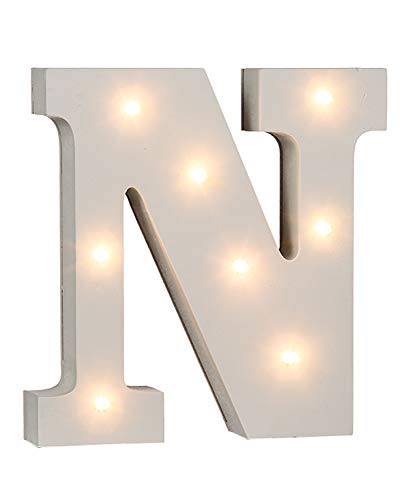 OOTB Upplyst bokstav N lampa med 8 LED, trä, 1 W, vit