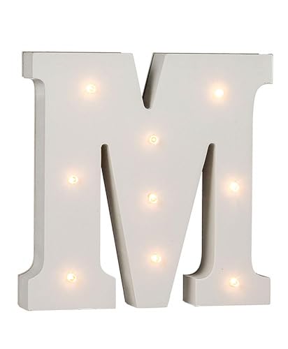 OOTB Upplyst bokstav M lampa med 9 LED, trä, vit