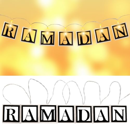 LED muslimska Ramadan strängljus, muslimska nattljus, trä ihålig bokstav Ramadan ljus, Ramadan dekoration ljus batteridriven, Ramadan hängande lampa för festivaler, fester, heminredning