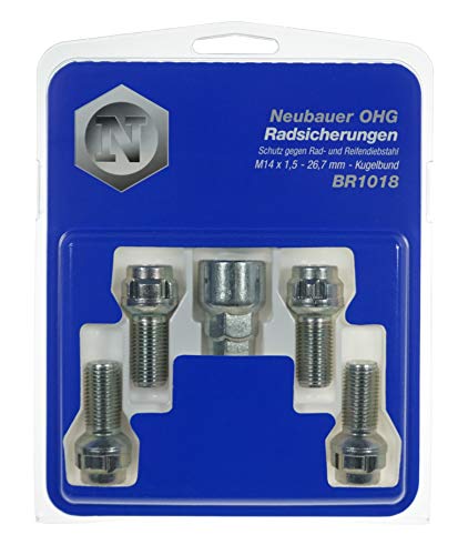 br1018 stöldskyddshjul bultar M14 x 1,5, boll sits R13, skaftlängd 26,7 mm, nyckelbredd 17 mm/19 mm