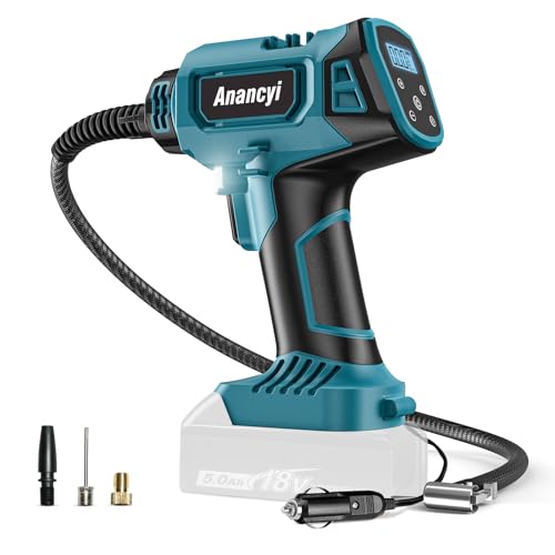 Anancyi Batteridriven kompressor för Makita batteri 18 V, elektrisk batteri luftkompressor/trådlös luftpump för cykel/bil/boll 160 PSI, 12 V bilströmförsörjning, automatiskt stopp med LED-lampa (utan