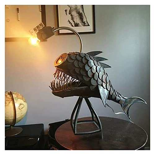 Lampa Rustik USB Angler Fish, Cafe Shark Steampunk Style, Retro Art Bordslampor LED Bulbs, Handmade Night Lights, Industrial Creative Home Office Decoration (Storlek: S)