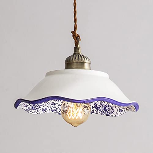LED antik hängande lampa keramik vintage vit blå porslin rund pendellampa rustik matsal kontor vardagsrum kök ljuskrona modern konst designlampa takbelysning retro inklusive glödlampa Ø 25 cm