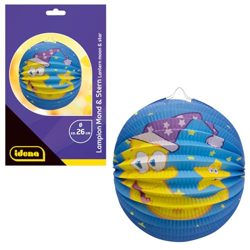 Idena 30415 30415-lampa måne och stjärna, ca Ø 26 cm, blå papperslykta med stjärnhimmelmotiv, barnlykta för Sankt Martin och ljusbeständig