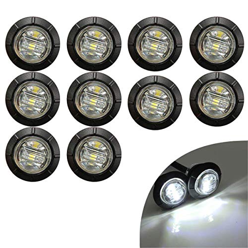 KYYET 10 st 3/4 tums montering LED bakre sidomarkörindikatorlampor för lastbilar, lastbilar, taxmarkör, husbilsmarkör, marin LED verktygsremsa lampa för båtar, bakljusbromsstopplampa 12 V (vit)