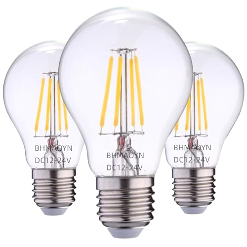 BHMAOYN 12V 24V E27 LED-lampor 6W Lågspänningslampor,AC/DC12-24V Antik Retro E27 LED-Lampor 60W Ekvivalent,Varm Vit 2700K för Solsystem,Husbil Husbil Marin,3-pack