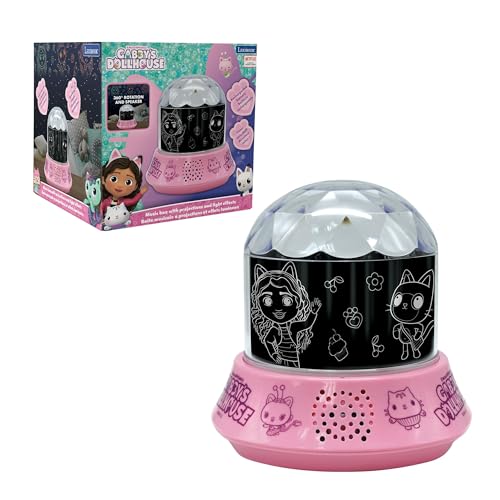 Lexibook, Gabby och det magiska hemmet, nattlampa med högtalare, Gabby's Dollhouse-projektioner, kalejdoskopiska taklampor, högtalare med extra uttag, uppladdningsbar, NLJ035GDHLXB