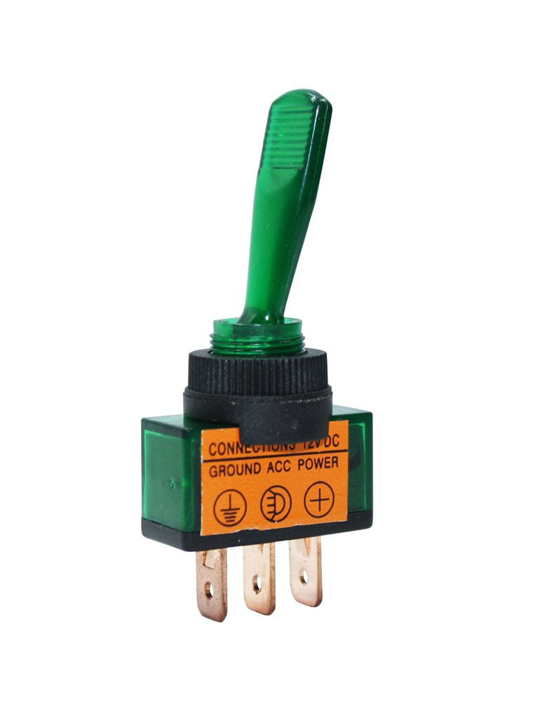 Vippströmställare lång arm, med grön lampa on-off 12V