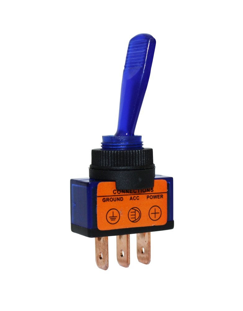 Vippströmställare lång arm, med blå lampa on-off 12V