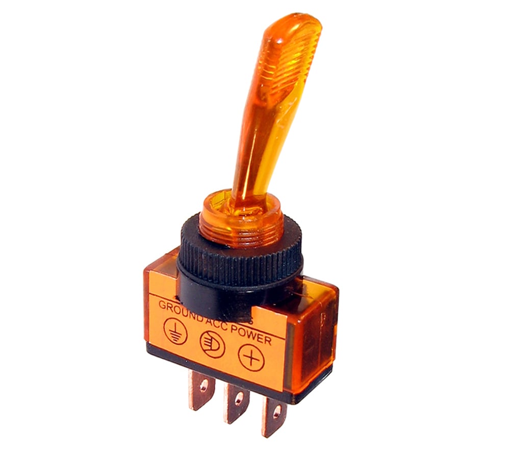 Vippströmställare lång arm, med orange lampa on-off 12V