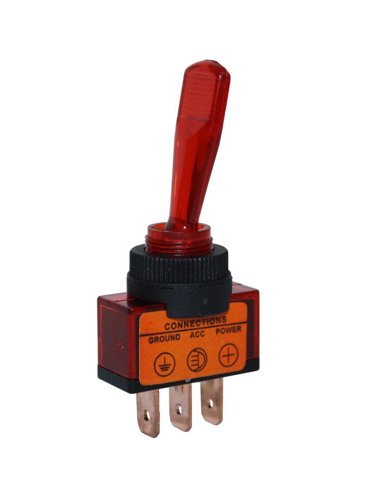 Vippströmställare lång arm, med röd lampa on-off 12V