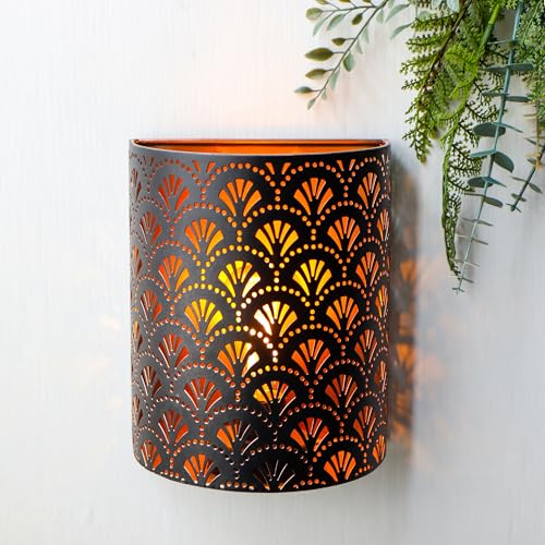 JHY DESIGN Batteridriven lampa 20 cm H vägglampett belysning metall rustik väggmonterad lampa med 6 timmars timer väggdekor för vardagsrum sovrum hall trappa (brun flabellum)