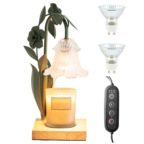 Ljusvärmarlampa, vintage stearinljus varm lampa med timer och dimmer, justerbar höjd ljusvärmare heminredning, vardagsrum sovrum dekor, presenter till kvinnor födelsedagspresent (med 2 glödlampor)