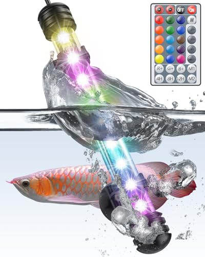 Pawfly 1,8 W akvarium LED-lampa 19 cm med timer akvarium bakgrundsbelysning med 4 belysningslägen undervattensljusslang med kraftfull fjärrkontroll (batterier ingår ej)