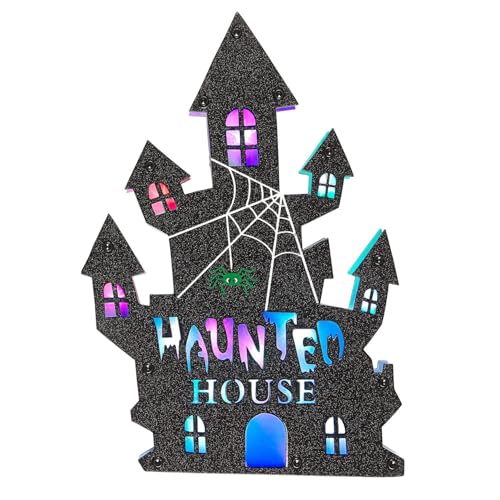 Widmann 86859 86859 spökhus med lysande, flerfärgade LED-lampor, läskiga hus, 35 x 24 cm, dekoration, väggdekoration, halloween, temafest, en storlek