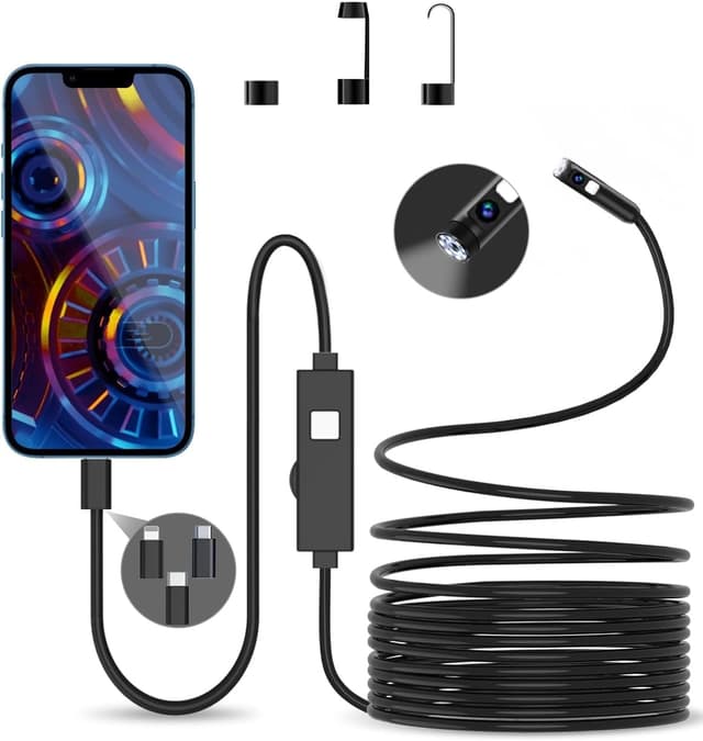 YOVOCA endoskopkamera med ljus, 1920P HD endoskop kamera mobiltelefon, 5,5 mm inspektionskamera rörkamera 5 m med 8 LED-lampor IP67 vattentät för iPhone, iPad, OTG Android-enheter
