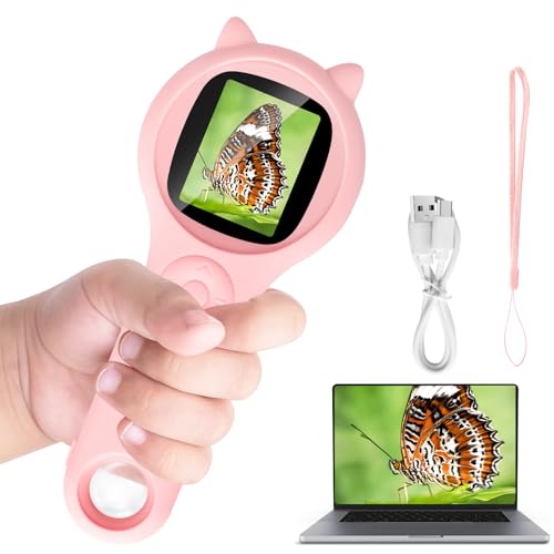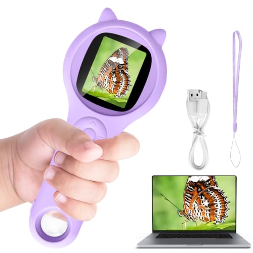 Mucek Mobiltelefon mikroskop för barn, 2,0 tum IPS-skärm 500 x fickmikroskop, 2 MP lins pixlar mini mikroskop utomhus, 3 nivåer justerbara LED-lampor, USB-port till PC, presenter till barn