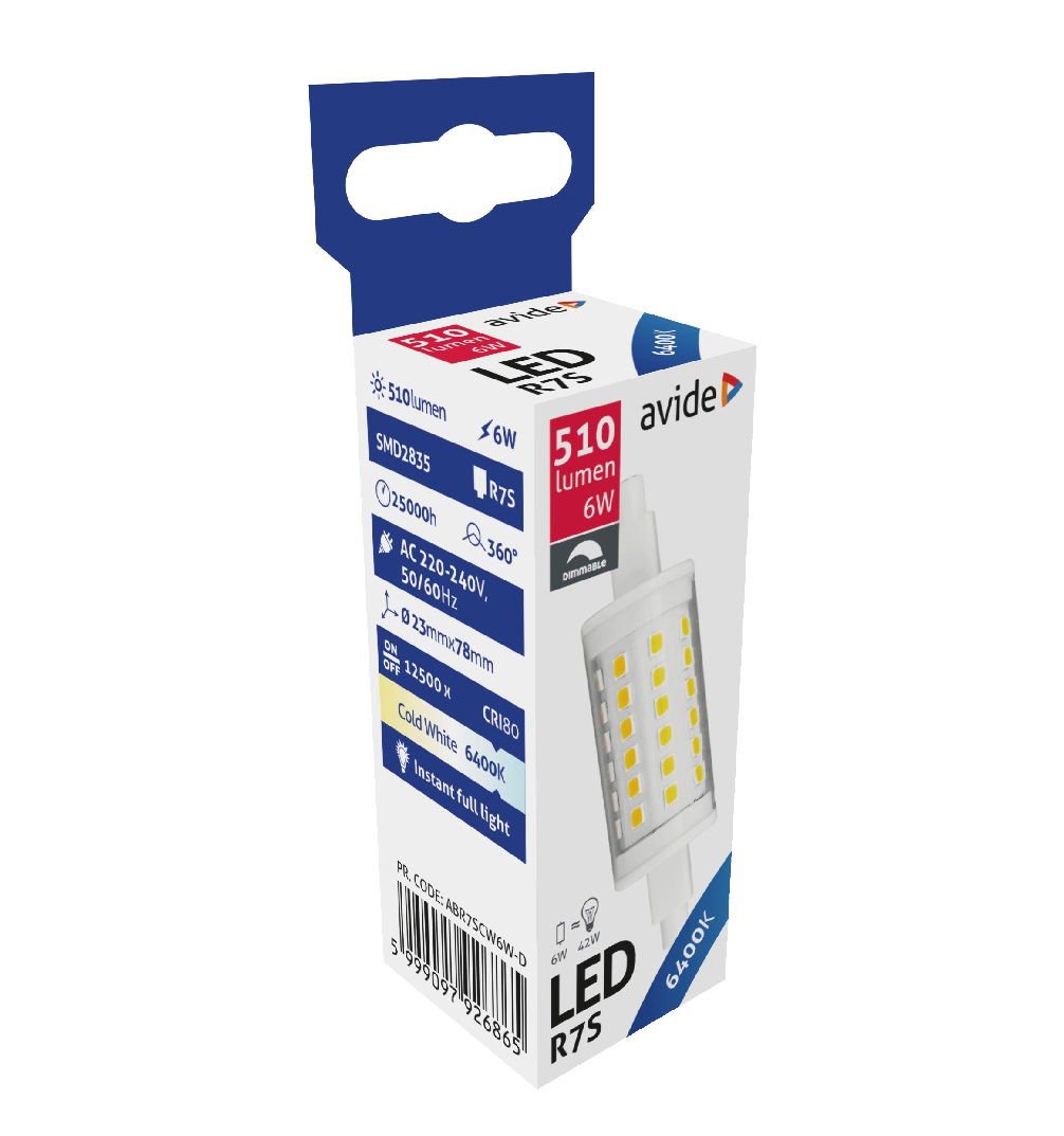 Avide | R7S-lampa | 6W | Kallvit 6400K | Dimbar