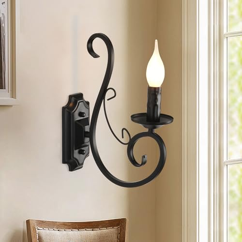 Ganeed Vägglampa Bedside Sconce Lampa Antik Smidesjärnsdesign Retro Vägglampor för vardagsrum Stairwell Foyer E14 Svart 1 Ljus (1 Pack)