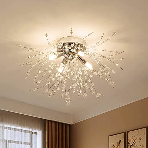 CAI-HAI modern kristalltaklampa, satellit fyrverkerier inbäddad taklampa, LED taklampa armatur, används för sovrum kök entré korridor (Silver 4 lampa)