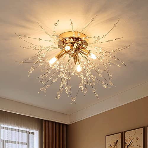 CAI-HAI modern kristalltaklampa, satellit fyrverkerier inbäddad taklampa, LED taklampa armatur, används för sovrum kök entré korridor (Guld 4 lampa)