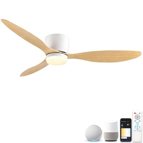 Barn Takfläkt Lampor med Fjärrkontroll APP Tyst Led Dimbar, Takfläkt med Lampor 6 Hastigheter Vändbara Vinter Sommar, Fläkt Ljus Tak Ljuskrona för Sovrum Litet Vardagsrum, Taklampa med Fläkt-White