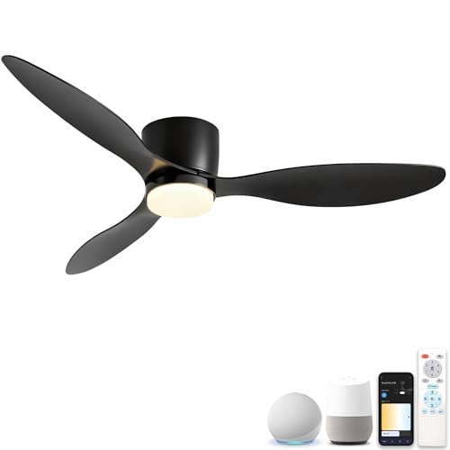 Led Takfläktar med Lampor Vändbar Fjärrkontroll, Modern Sovrum Taklampa för Fläkt Tyst 6 Hastigheter Dimbar Små Tak för Fläktljus för Vardagsrum, Svart 50CM
