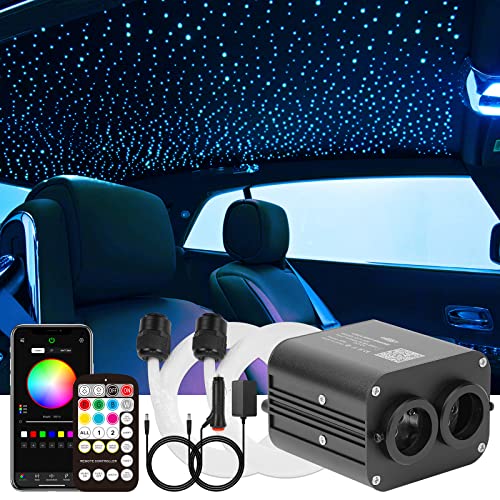 CHINLY stjärnhimmel bil glasfiber ljus för bil/tak, 20 W blinka 1 000 st x 0,75 mm x 4 m Bluetooth RGBW APP/Remote LED Fiber Optic Star taklampor kit