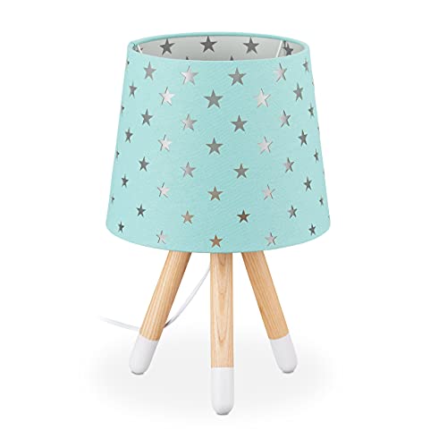 Relaxdays Sängbordslampa barn, bordslampa för pojkar och flickor, E14-sockel, barnlampa stjärnor, H x D 39 x 25 cm, mint, 10035354_213