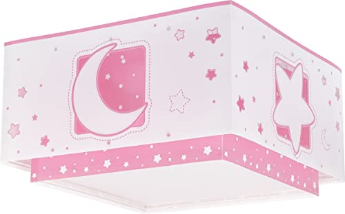 Dalber taklampa för barn, månljus, måne och stjärnor, rosa, taklampa barnrum, 63236S, E27