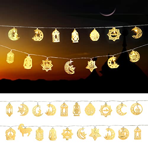 LIHAO Ramadan-ljusslinga, 2 st. stjärnor, måne, Eid Mubarak, 20 LED-lampor, lykta, dekoration för Ramadan, fest, bröllop, födelsedag (varmvit)