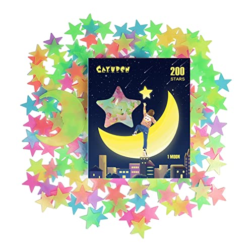 3D lysande stjärnor, CAYUDEN 201 st färgglada superljusa lampor i mörkret stjärnor klistermärken för tak stjärnor och måne lysande stjärnor plast väggklistermärken för barnrum stjärnhimmel dekoration