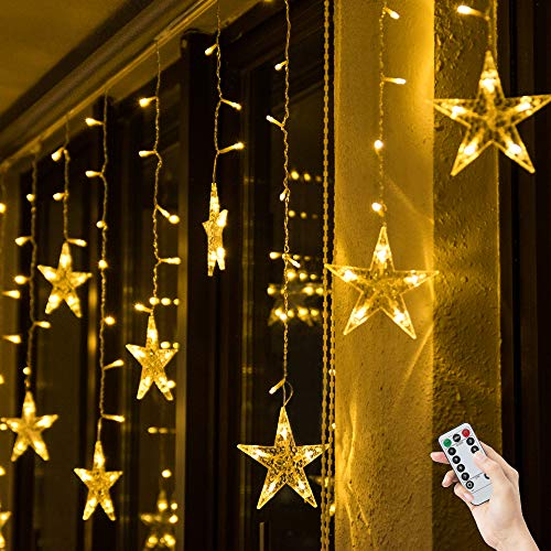 SALCAR Ljusslinga med 12 LED-stjärnor, 138 lampor fönster LED-ljusslinga med 8 lägen inomhus och utomhus ljuskedja vattentät dekoration för jul
