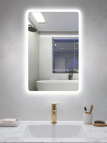 LISA LED-Badrumsspegel Med Belysning 70 x 50 cm, Stor Med Touch Dimbar Varmvit/Kallt Vitt Ljus, Anti-Dimma Väggspegel för Badrum, Toalett, Hall, Rundade Hörn