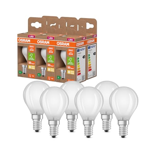 OSRAM LED-lampa i klassisk minibollform, med dekorativ LED-tråd i frostad design, energieffektivitetsklass A, E14, 1,2 W, 255 lm, 2700 K, varmvit. Utan uppvärmning, 6-pack