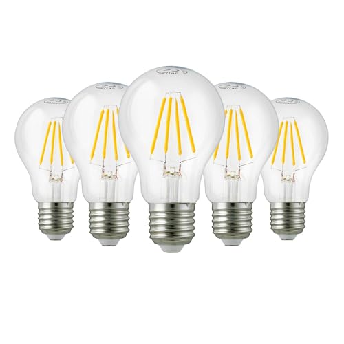 Hellum LED-lampa E27 dimbar, 7W varmvit lampa med 806 lumen LED-tråd, E27 vintage glödlampa ersätter 60-watts glödlampa, 2700 Kelvin varmvit klar, 206517 5-pack