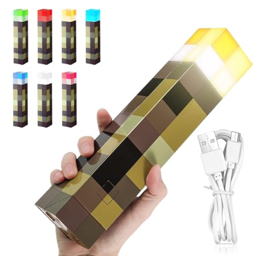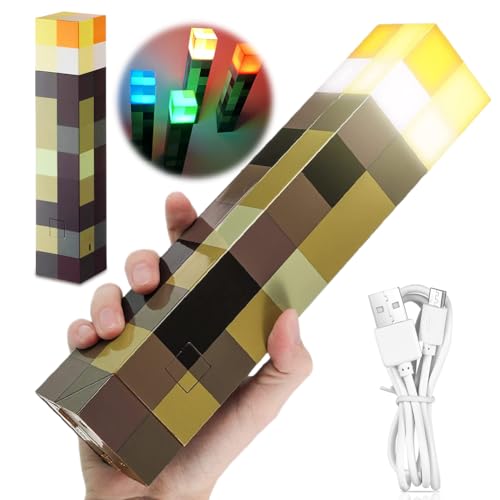 Lampa fackla vägglampa Craft, 28 cm nattlampa uppladdningsbar, 7 färger Hand/Väggfäste Belysning med krok, 3D-torch-lampa med USB-laddning för barnpresenter, cosplay, festdekoration