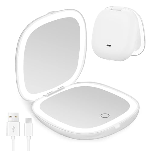 JIMACRO LED resesminkspegel, 1 x /10 x förstoringsfickspegel med 56 LED-lampor, USB-laddning, hopfällbar spegel med beröringssensor i 3 färger, justerbar ljusstyrka, perfekt som handväska, flickgåva
